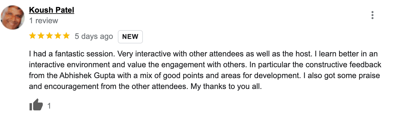 You will be learning and practicing and get feedback from our coaches to improve your skillls. You will have frameworks to build conversations and much more...