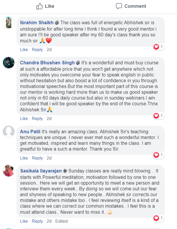 Step #3: In this step, you perform in our Facebook community (4000+ members) by posting a simple speech every day for seven days.